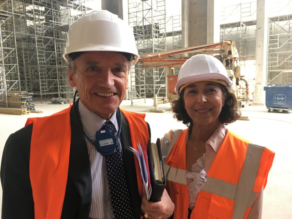 Maryse Aulagnon, présidente de la FSIF et Bertrand de Feydeau, président de la Fondation Palladio, lors de la visite de la rénovation des Ateliers Gaîté (Paris 14) par Unibail-Rodamco-Westfield